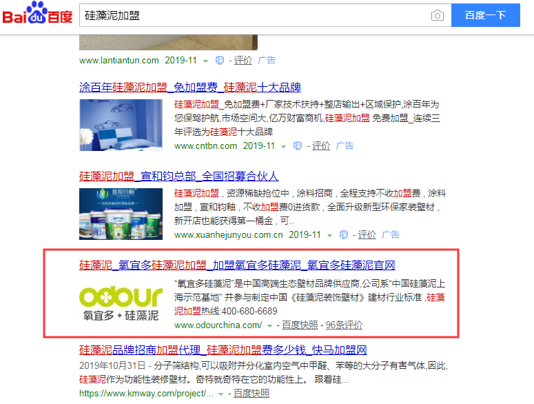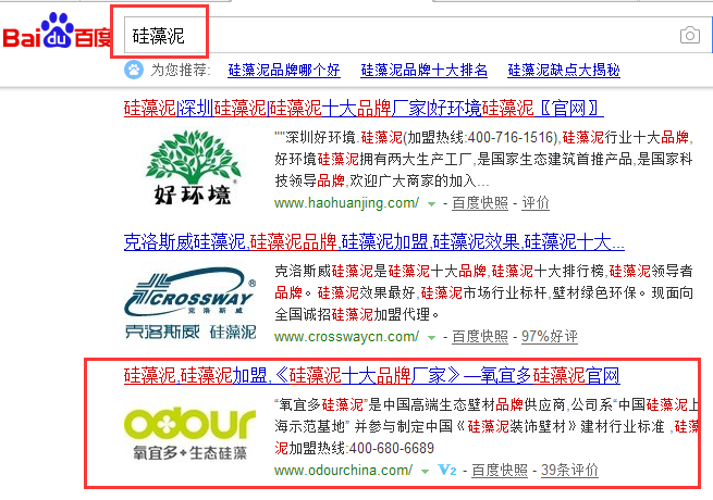 下圖為關(guān)鍵詞“硅藻泥加盟”排名截圖: